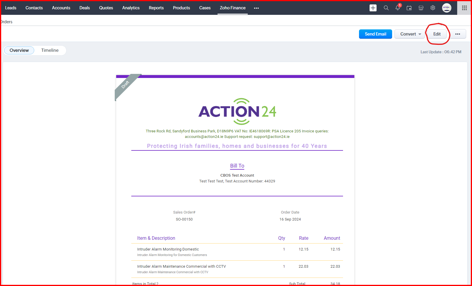 Click on "Edit Sales Order" button on upper right hand side of screen